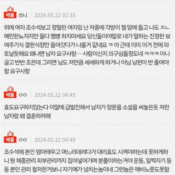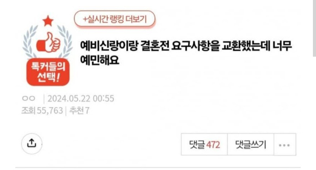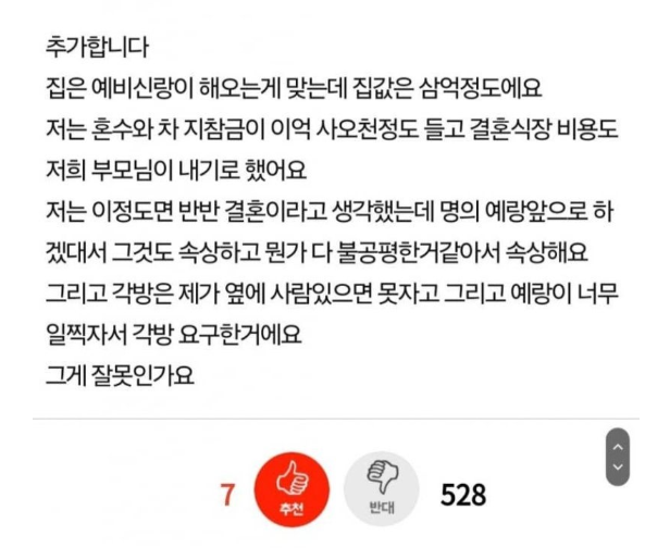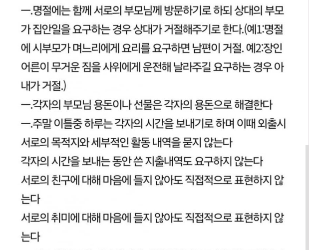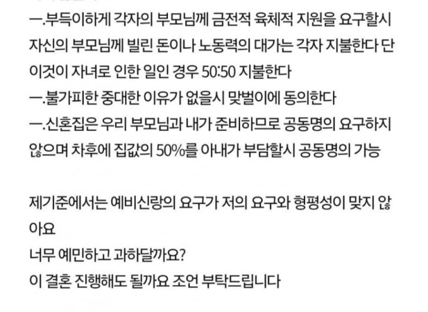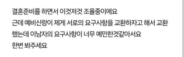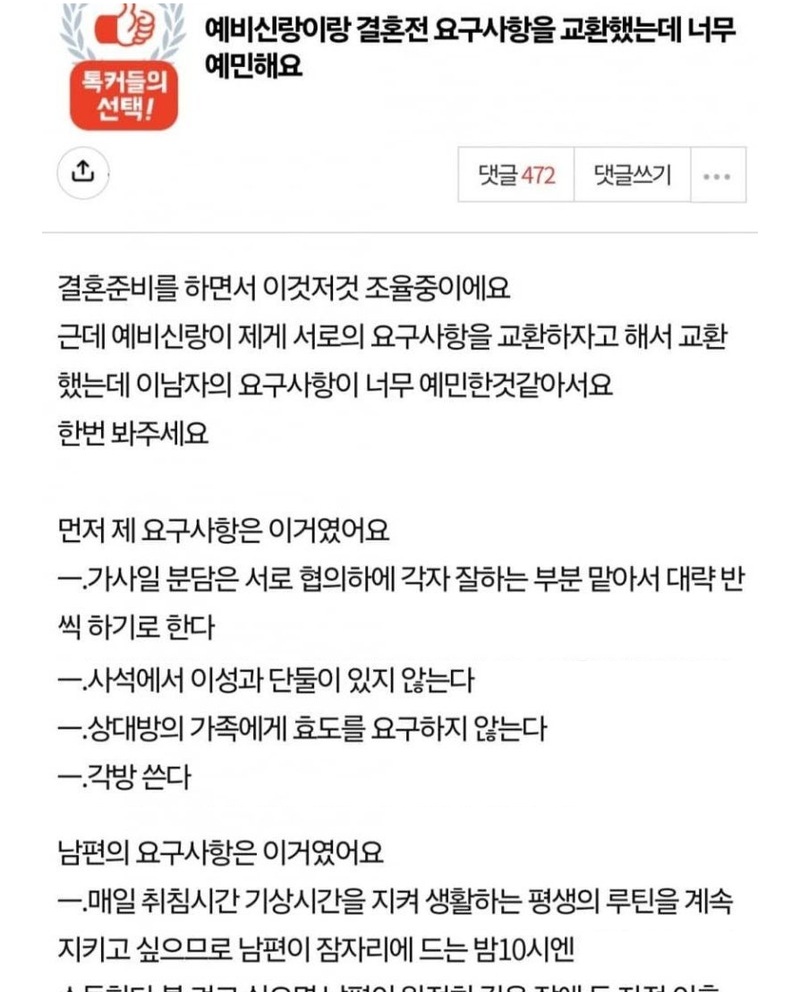 결혼전 남친과 요구사항 교환했는데 남친이 너무 예민해요