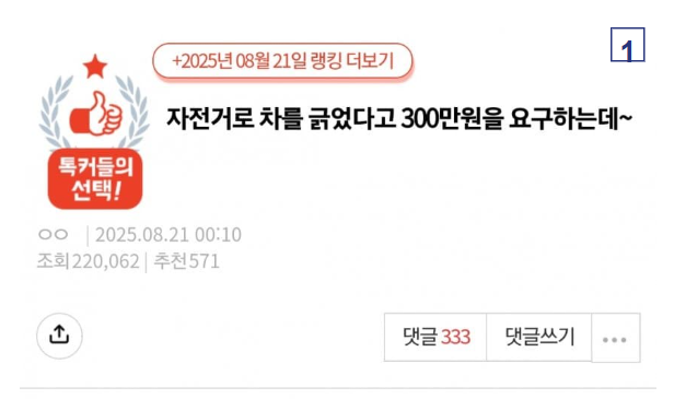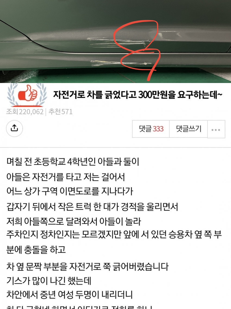 자전거로 차 긁었다고 300만원 요구하네요